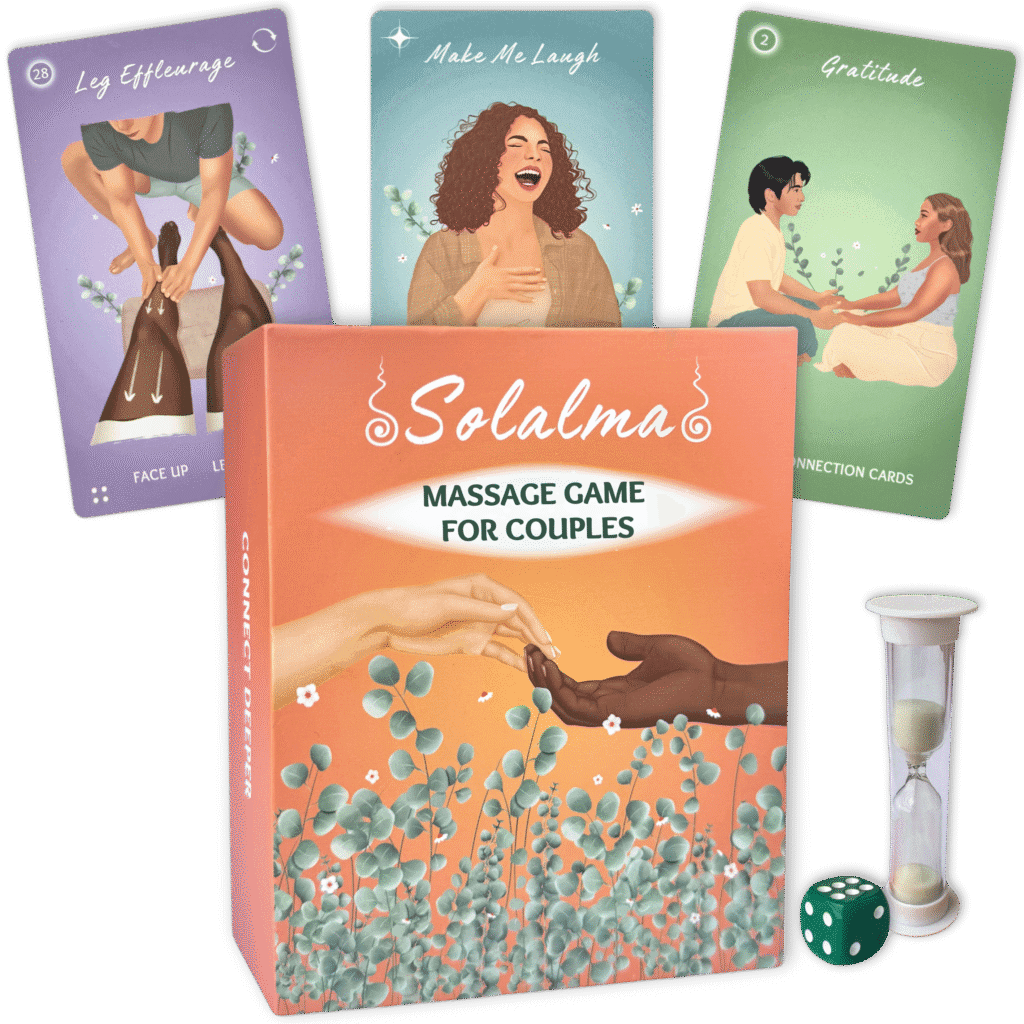 Solalma is for couples of any age. It works whether you’ve been together for 6 months or 30 years. It’s ideal for those with no massage experience or couples already familiar with giving and receiving massage.